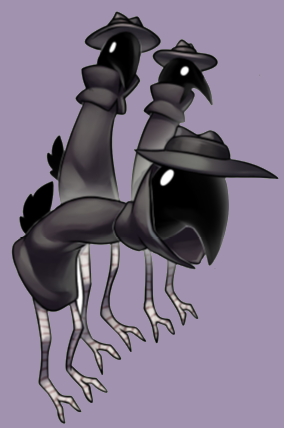 Что отличает их от других птиц, так это их стремление работать в команде в обеспечении безопасности районов и поиске улик, часто соединяясь с двумя или тремя другими агентами на комнату, чтобы держать его взаперти от любого нарушителя, желающего нарушить сцену расследование.