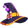 Found in early versions of Queen Vanessa's manor, the witch hat reduces energy to one, but regenerates it without the need to collect orbs. As there is no energy system in the final version of the game, this hat has likely been replaced by the Brewing Hat due to their similarities in design.